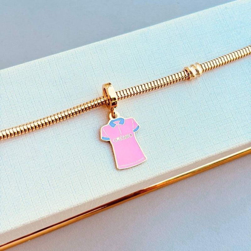 Com um design adorável que destaca a famosa camiseta do Grêmio em cores vibrantes, este berloque é ideal para personalizar pulseiras e colares, adicionando um charme especial a qualquer look. O folheado em ouro 18k garante durabilidade e um brilho que vai chamar a atenção.
