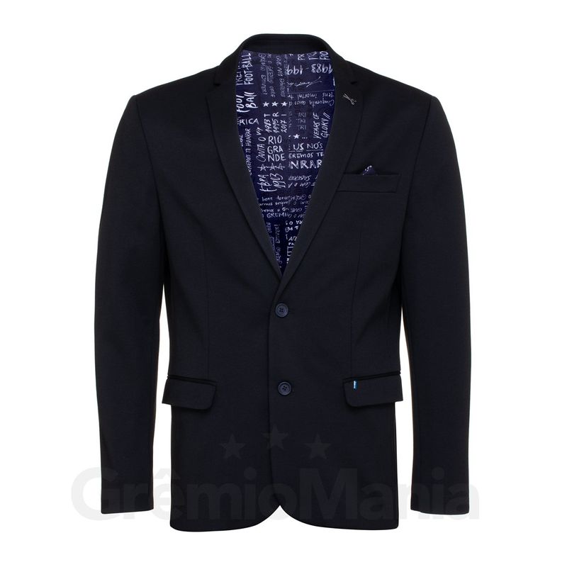 Composição: 80% Poliéster 15% Viscose 5% Elastano Informações: Modelagem Slim. Estampa do forro personalizada com trechos do hino do Grêmio. Referência: 609 626283