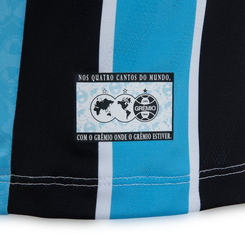 Feita em tecido 100% poliéster, proporciona conforto para o uso diário. A barra lateral traz grafismos sutis que exibem o escudo de 1985, marcando a primeira aparição das nossas estrelas de bronze, prata e ouro. A gola é em V. Nas costas, a etiqueta Imortal aparece acima da bandeira do Rio Grande do Sul, reforçando nossa essência gaúcha. Já na barra inferior, o patch especial com os continentes simboliza a presença da torcida gremista nos quatro cantos do mundo.