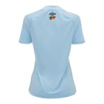 A camisa celeste do Grêmio 2025, modelo feminino torcedora, celebra a força da mulher gremista com um design que une tradição e conforto. Com modelagem fit, a peça tem frente em jacquard texturizado e costas em mesh respirável, garantindo leveza e bem-estar no dia a dia. A gola V em retilínea texturizada traz um acabamento elegante, enquanto o escudo bordado destaca a identidade Tricolor. Na gola traseira, a bandeira do Rio Grande do Sul reafirma nossa essência gaúcha. Um uniforme feito para torcedoras que vivem o Grêmio com orgulho e atitude.