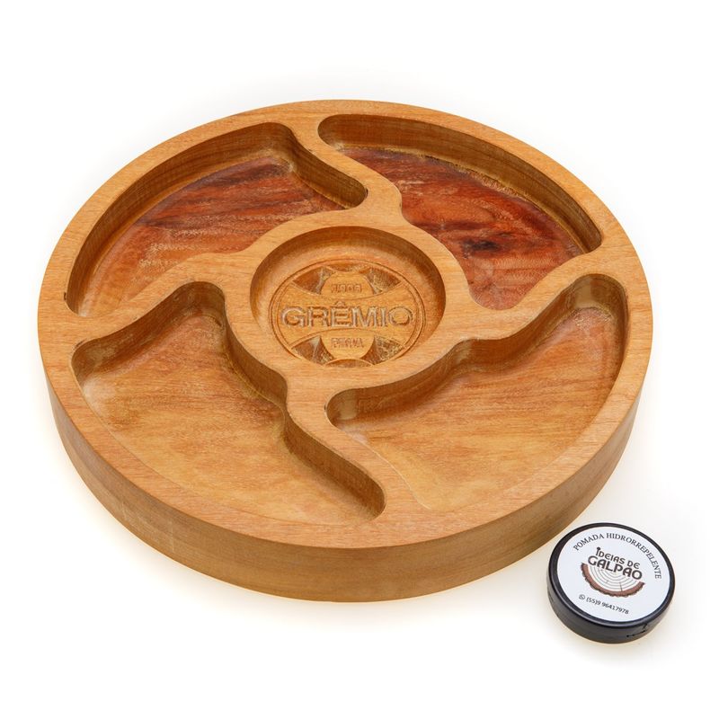 Feita através do processo de marchetaria utilizando madeira garapeira. Produzida em madeira garapeira, com DOF (documento de origem florestal). O processo de acabamento é manual, onde garante se riqueza nos mínimos detalhes. Possui tratamento hidrorrepelente com a pomada feita de cera de abelha. O tratamento hidrorrepelente além dificultar a entrada de fluidos orgânicos dos alimentos, serve para prevenir a formação do mofo.