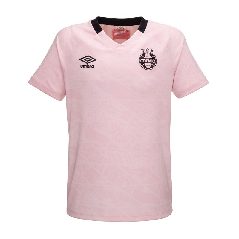 Camisa Juvenil Grêmio Umbro Outubro Rosa 2025 chega em tom rosa com escudo monocromático em preto e gola em contraste, destacando-se pelo design moderno e pelo simbolismo da causa, a nova camisa representa conscientização e solidariedade.